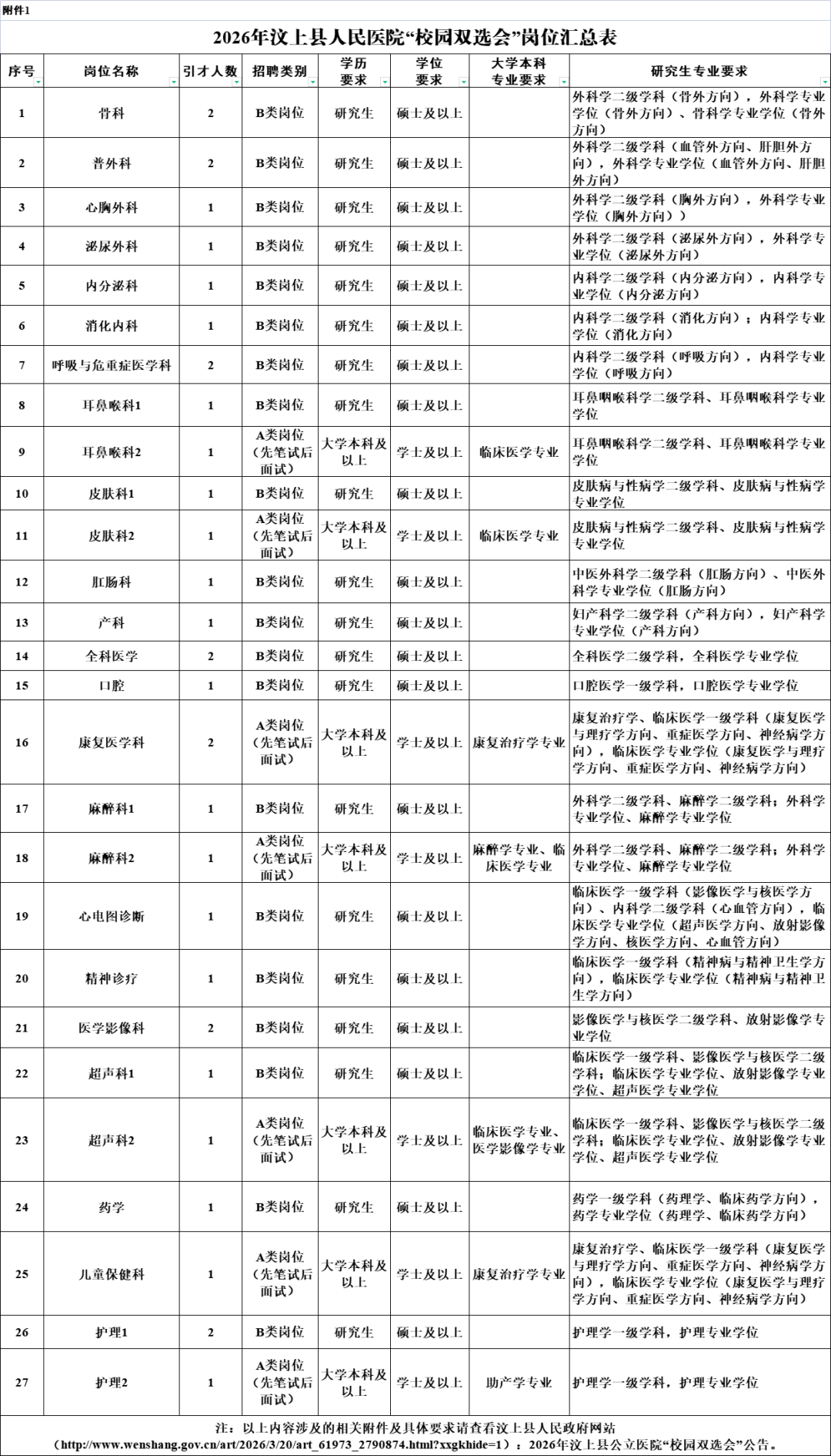 以上内容涉及的相关附件及具体要求请查看汶上县人民政府网站(http://www.wenshang.gov.cn/art/2026/3/20/art_61973_2790874.html?xxgkhide=1):2026年汶上县公立医院“校园双选会”公告。应聘人员应及时了解网站发布的最新招聘信息,报名时所留电话保持畅通,因本人原因错过重要信息而影响考试及聘用的,责任自负。
